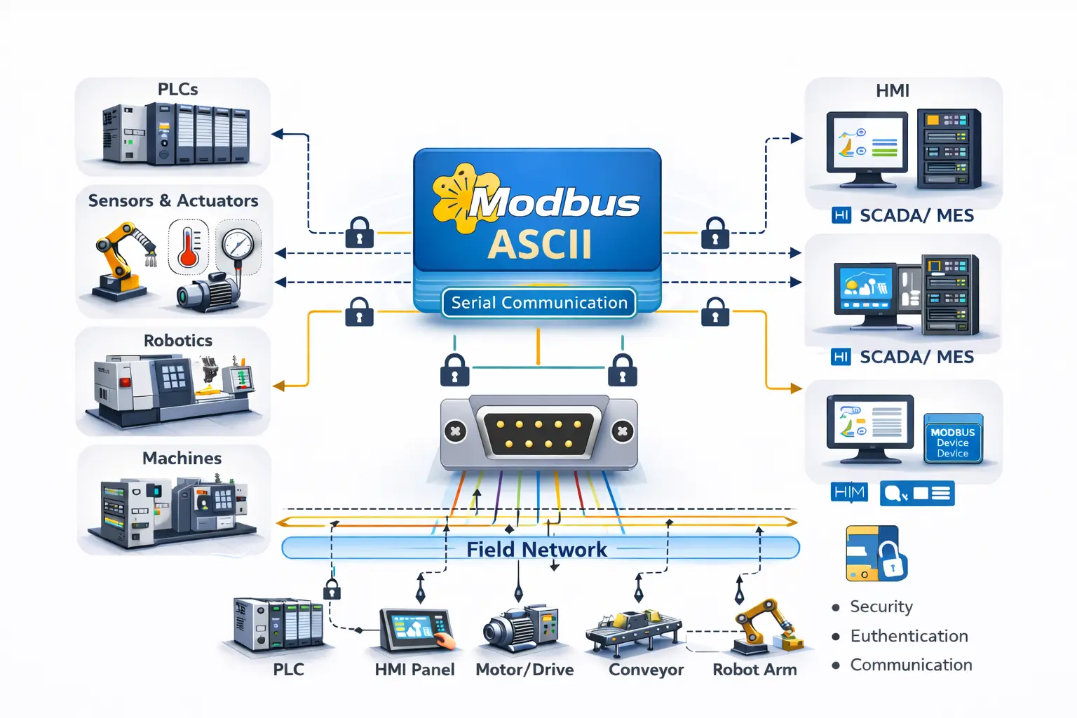 However, the protocol also has limitations. Because each byte is transmitted as two ASCII characters, the resulting messages are longer than those used in binary formats. This increases transmission time and reduces overall communication efficiency. As a result, modern high-speed automation systems typically prefer more efficient protocols unless compatibility with older devices is required.